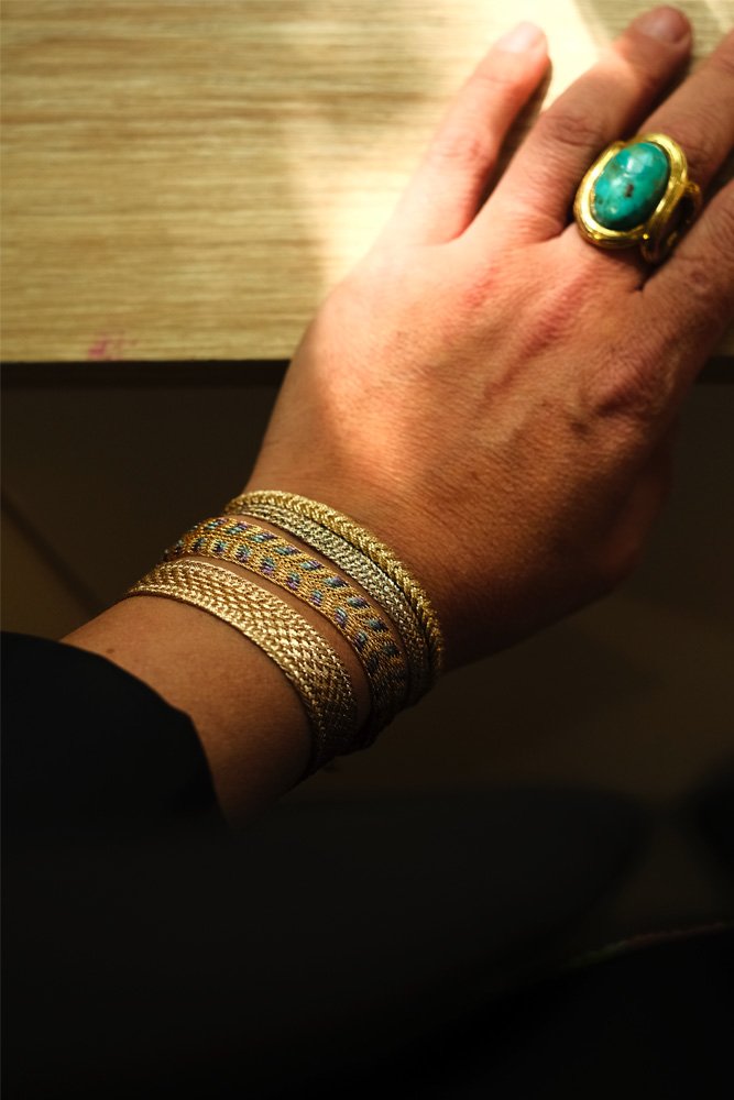 Les bracelets Maayaz sont confectionnés selon la technique marocaine de la “Sfifa”. Ce tissage minutieux de fils d’or, traditionnellement utilisé pour orner les somptueux caftans, est ici réinventé pour donner naissance à des bijoux d’une finesse remarquable. Chaque pièce est le fruit d’un travail artisanal minutieux, réalisé par des artisans passionnés qui perpétuent un savoir-faire transmis de génération en génération.
