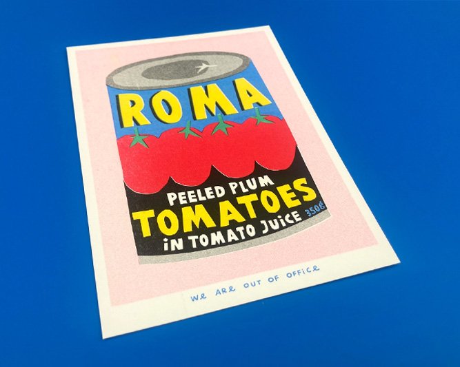 Affiche risographie ‘Boîte de tomates italiennes’ | WE ARE OUT OF OFFICE