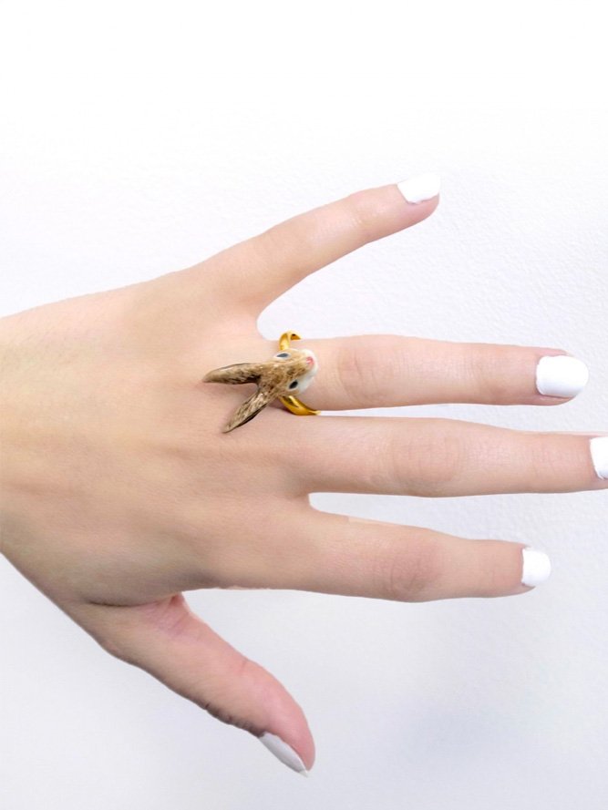 Cette jolie bague NACH est composée d’une tête de lapin brun en porcelaine et en laiton doré à l’or fin. La porcelaine est réalisée et peinte à la main ce qui rend les pièces NACH uniques !
