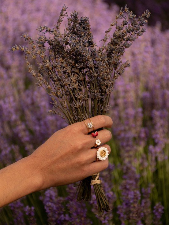Cette jolie bague NACH est composée d’une marguerite en porcelaine et en laiton doré à l’or fin. La porcelaine est réalisée et peinte à la main ce qui rend les pièces NACH uniques !