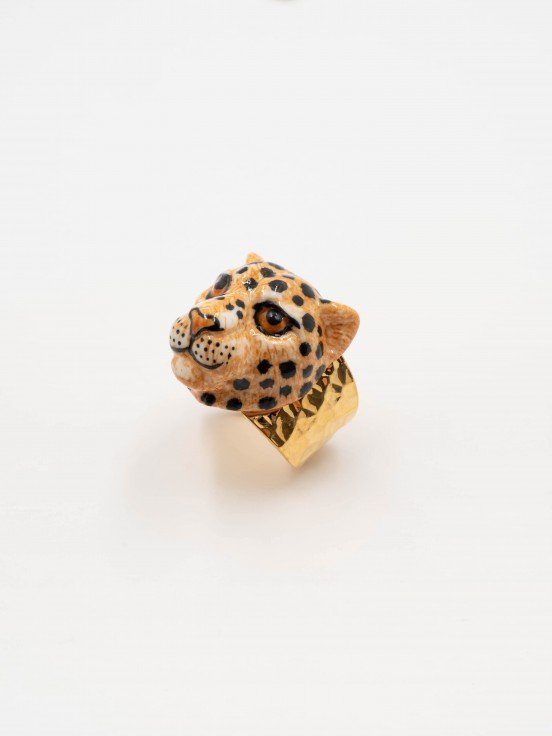 Cette jolie bague NACH est composée d’un léopard en porcelaine et en laiton doré à l’or fin. La porcelaine est réalisée et peinte à la main ce qui rend les pièces NACH uniques !