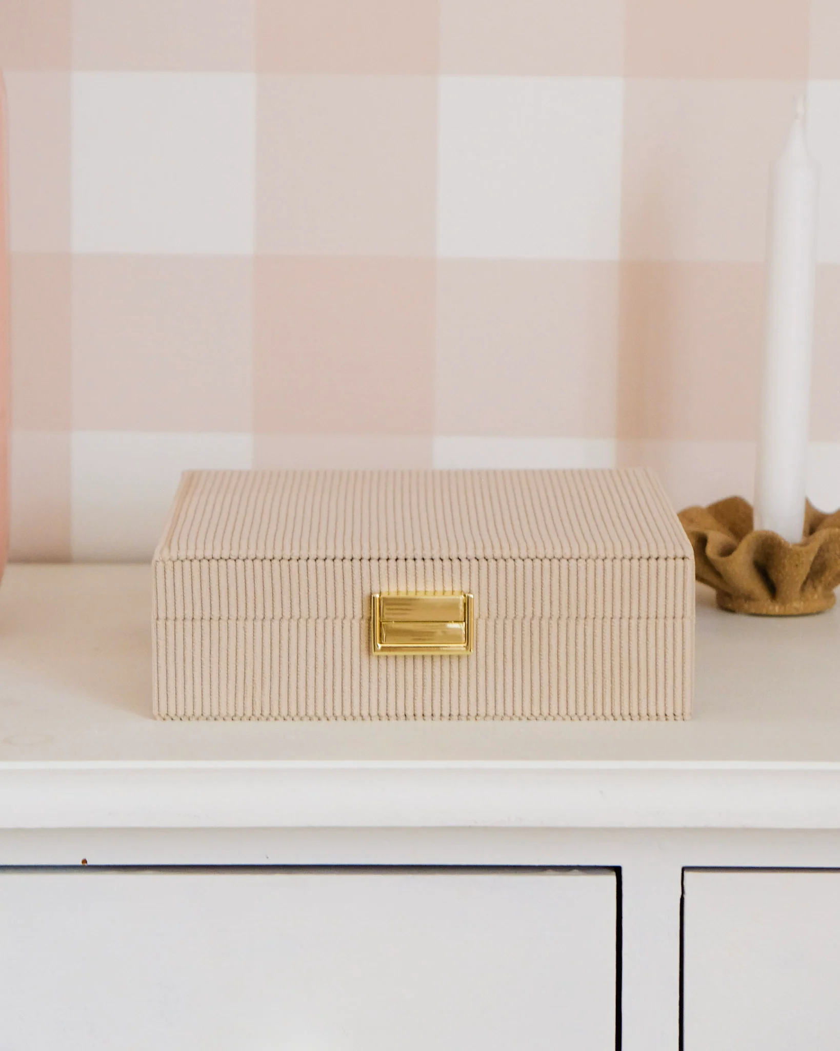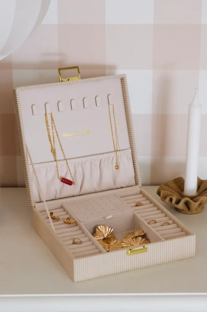 Boîte à bijoux ‘Anne’ en velours côtelé Beige | MAISON SCARLETT