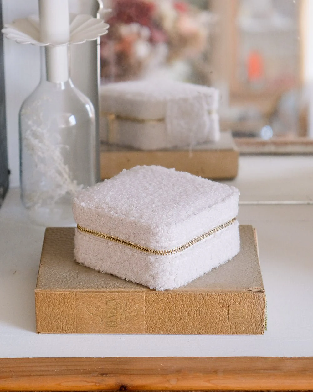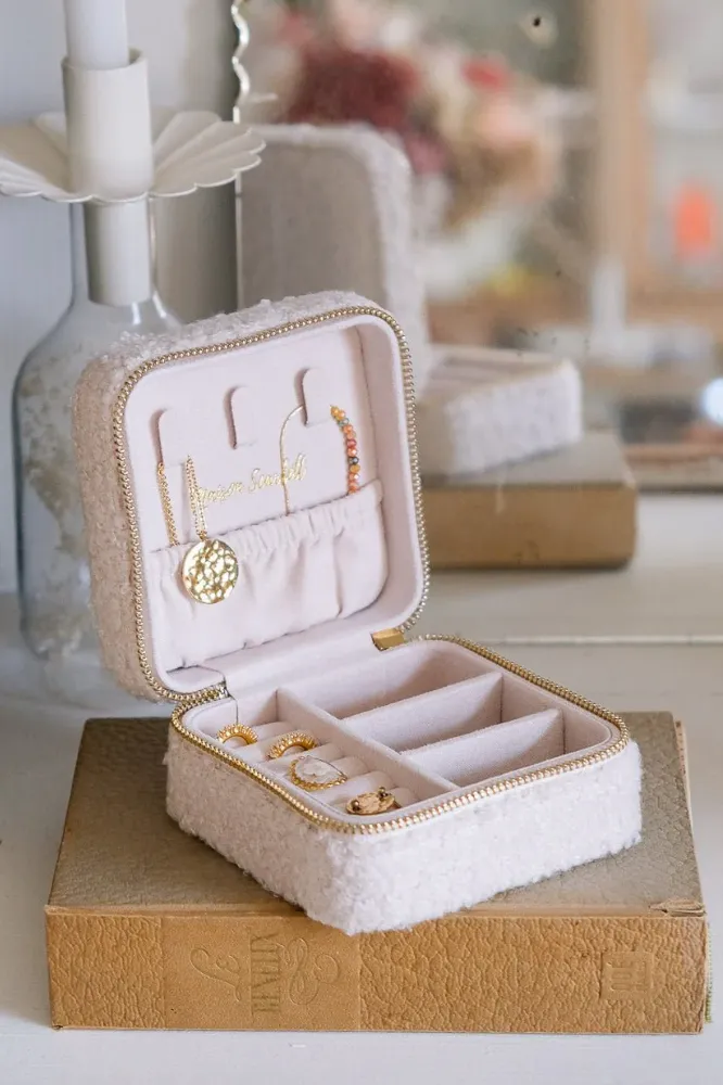 Boîte à bijoux de voyage ‘Corinne’ en moumoute Blanc | MAISON SCARLETT