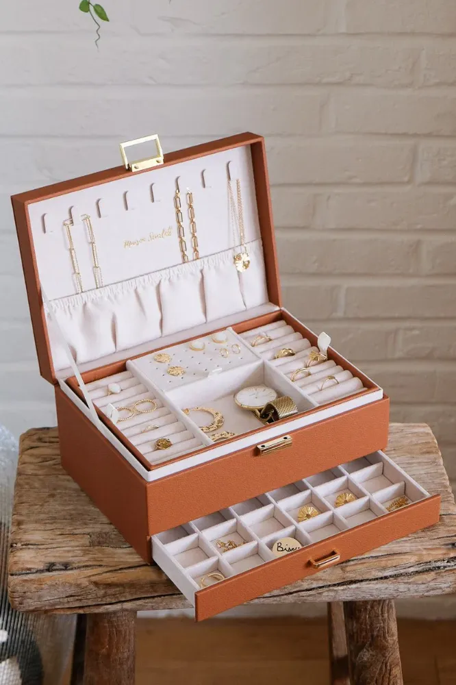Boîte à bijoux ‘Denise’ en cuir PU Camel | MAISON SCARLETT