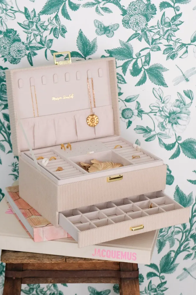 Boîte à bijoux ‘Denise’ en velours côtelé Beige | MAISON SCARLETT