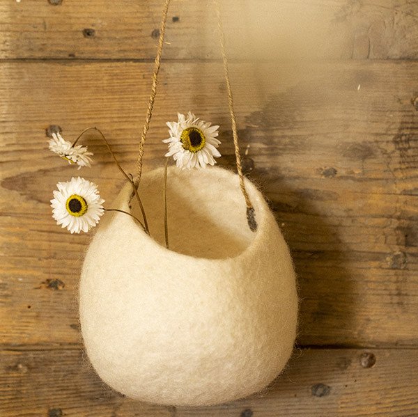 Ce bol imite la forme d’un nid, et se suspend pour créer une impression de légèreté dans votre intérieur. Il peut contenir une petite plante, ou de petits objets.