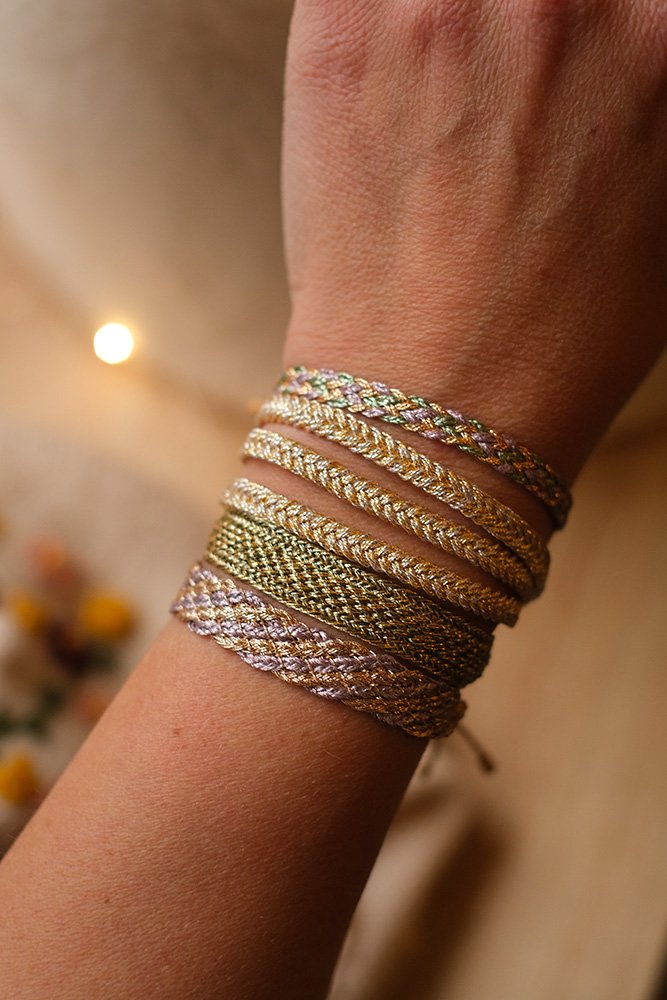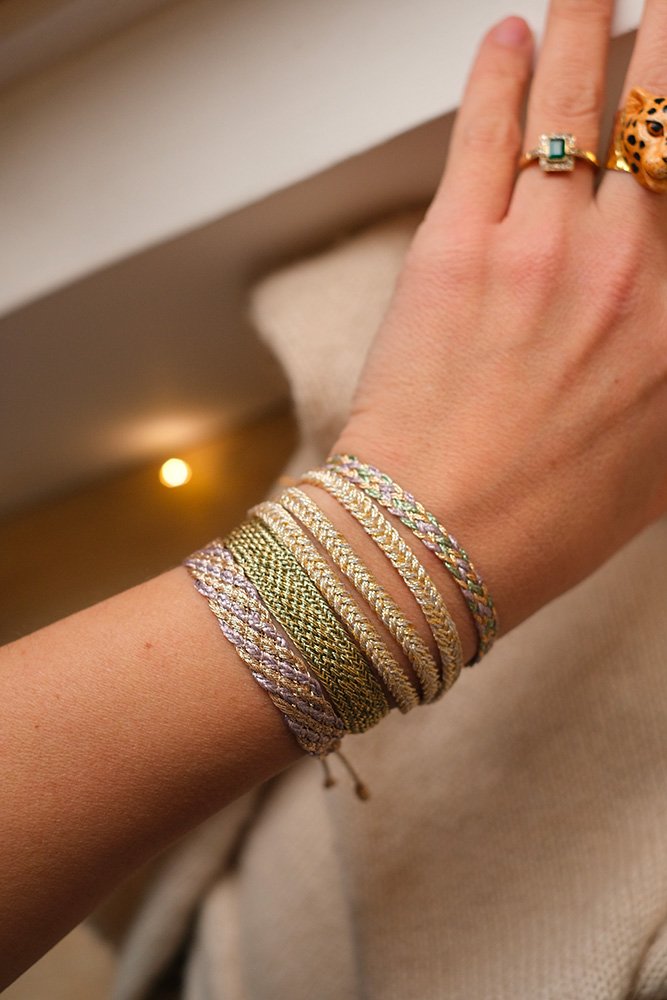 Maaÿaz fusionne tradition et modernité de manière harmonieuse, offrant de beaux bracelets brillants qui célèbrent l’art du tissage marocain, mais toujours avec une jolie touche contemporaine !