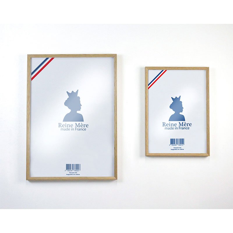 Cadre REINE MÈRE à poser ou à accrocher, disponible en deux tailles. Fabriqué en chêne massif issu de forêts gérées durablement et avec sa vitre en verre, il sublimera n’importe quelle affiche par son design simple et épuré !