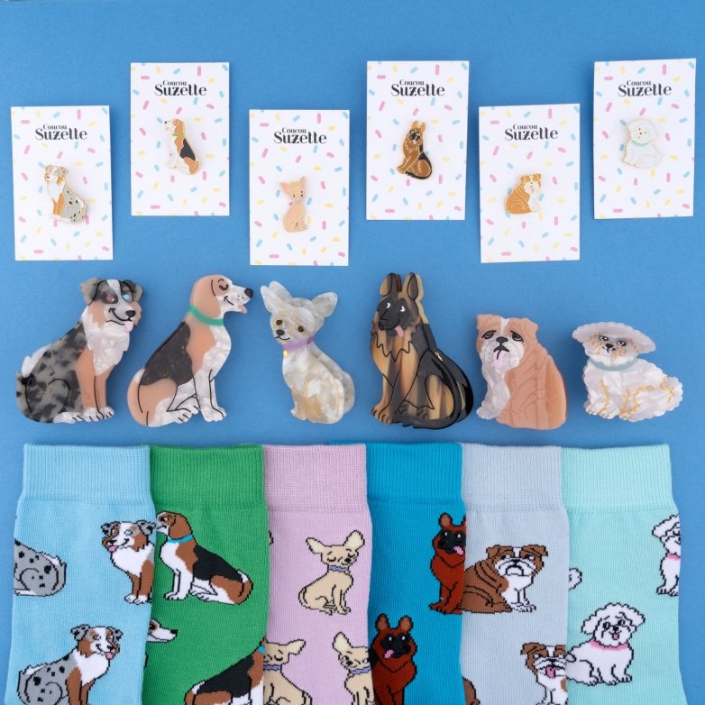 Chez Coucou Suzette, la créativité est au cœur de chaque produit. Des pinces à cheveux aux bijoux ou des chaussettes aux pin’s, chaque création est une explosion de couleurs et de fantaisie. Découvrez notre sélection bien sentie sur notre boutique en ligne Mouflette, ainsi que dans nos boutiques situées au coeur du Vieux-Lille et à La Madeleine, dans le Nord.