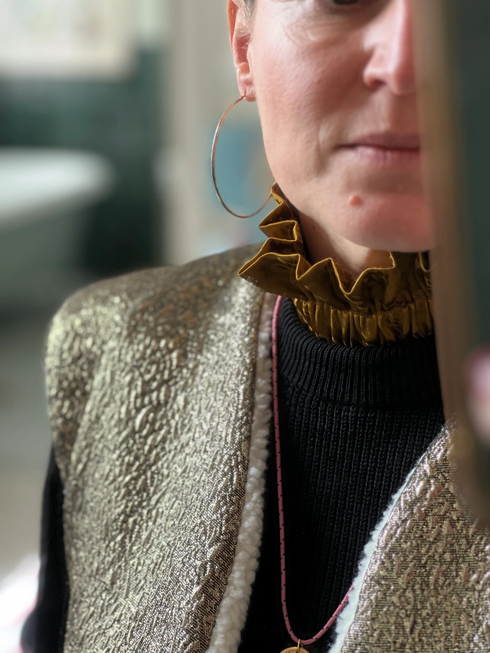 Il se glisse naturellement sur ou sous un pull, une blouse ou encore une robe pour ajouter ce petit supplément de style qu’on aime tant chez Mouflette. Chaque pièce est fabriquée à Lille, à la main, par Céline dans son atelier.