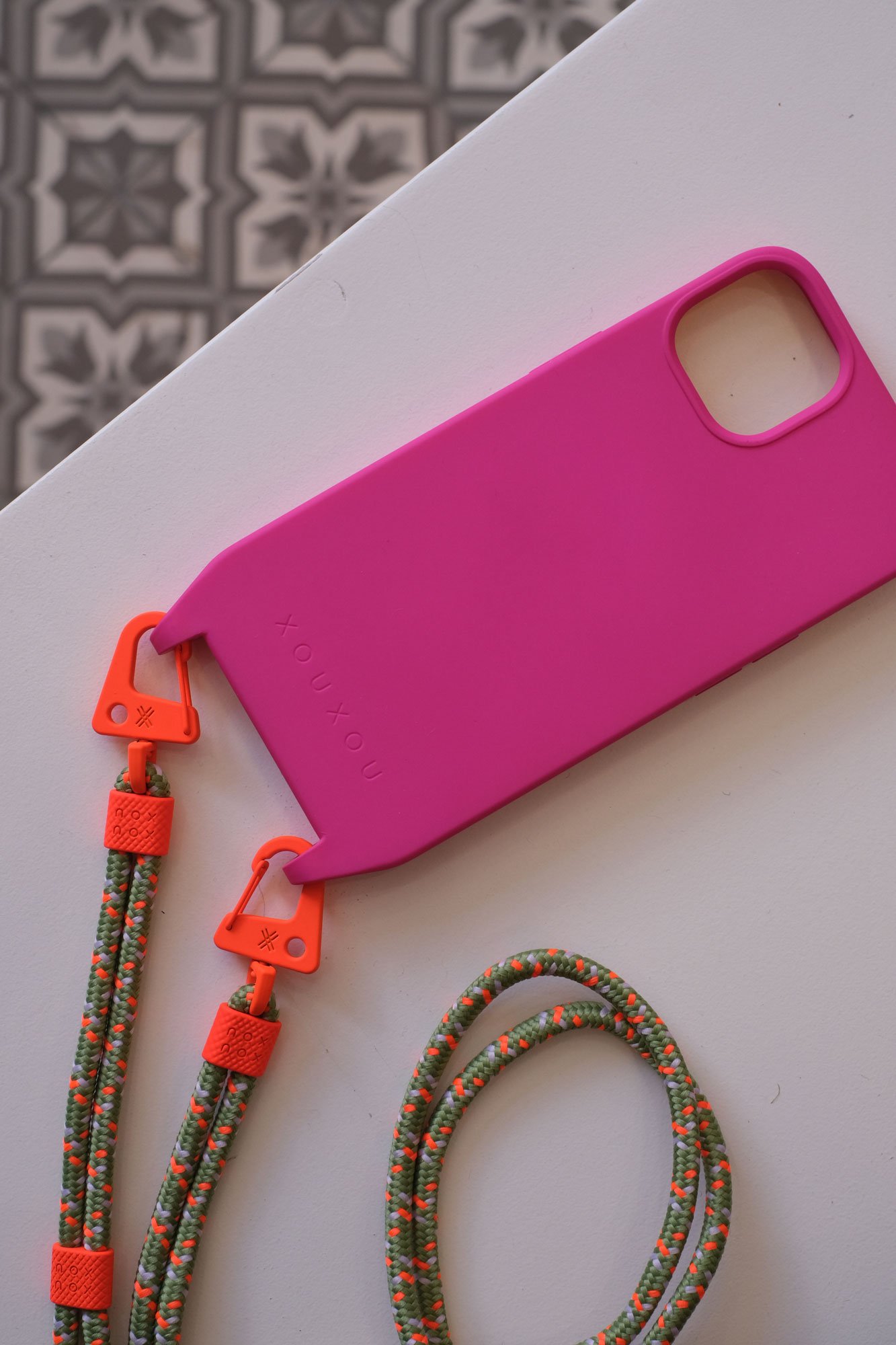 Une sangle ronde réglable avec ses jolis mousquetons, à associer avec une coque XOUXOU pour garder les mains libres !