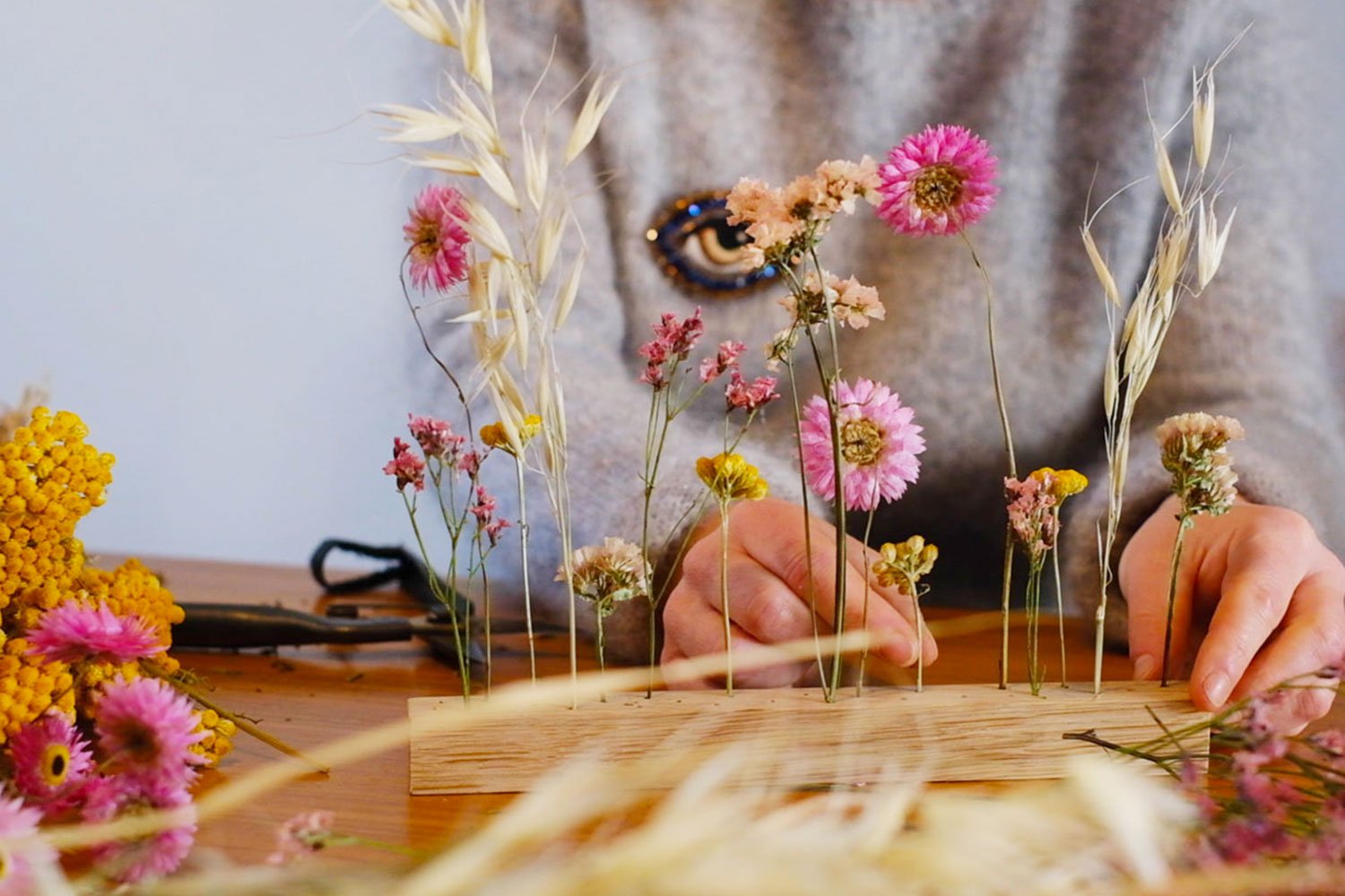 • Matériaux : bois et fleurs séchées