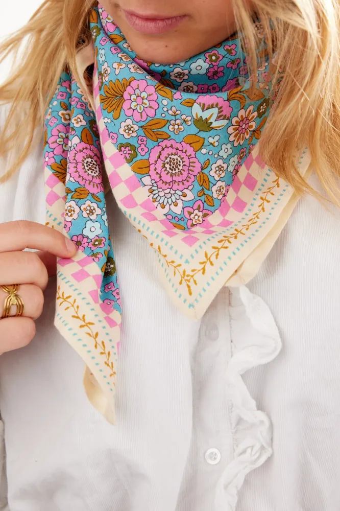 Ce foulard signé Bonheur du Jour apporte une touche bohème et élégante à toutes vos tenues. Son imprimé fleuri, réalisé en block print « à l’indienne », révèle un joli motif exclusif imaginé par la marque.