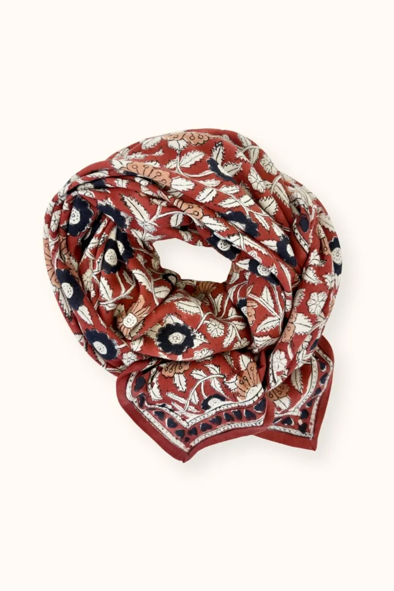 Ce joli foulard est confectionné de manière artisanale grâce à la technique indienne du block-print. Ses couleurs sont réalisées à partir de pigments naturels. Cette confection manuelle peut entraîner certaines “irrégularités” dont nous aimons le charme…