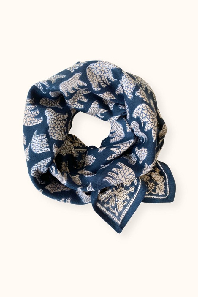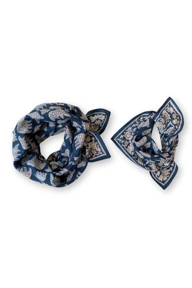Ce joli foulard est confectionné de manière artisanale grâce à la technique indienne du block-print. Ses couleurs sont réalisées à partir de pigments naturels. Cette confection manuelle peut entraîner certaines “irrégularités” dont nous aimons le charme…