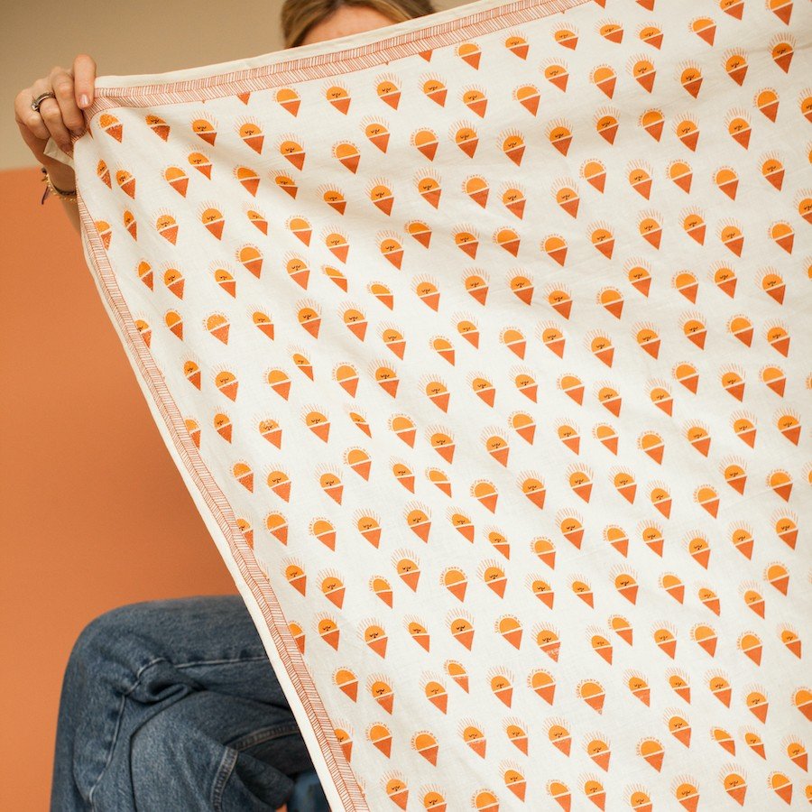 Ce joli foulard est confectionné de manière artisanale grâce à la technique indienne du block-print. Ses couleurs sont réalisées à partir de pigments naturels. Cette confection manuelle peut entraîner certaines “irrégularités” dont nous aimons le charme…