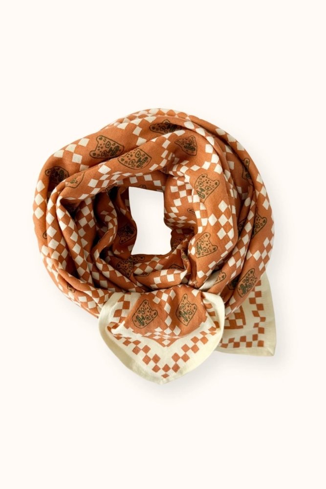 Ce joli foulard est confectionné de manière artisanale grâce à la technique indienne du block-print. Ses couleurs sont réalisées à partir de pigments naturels. Cette confection manuelle peut entraîner certaines “irrégularités” dont nous aimons le charme…