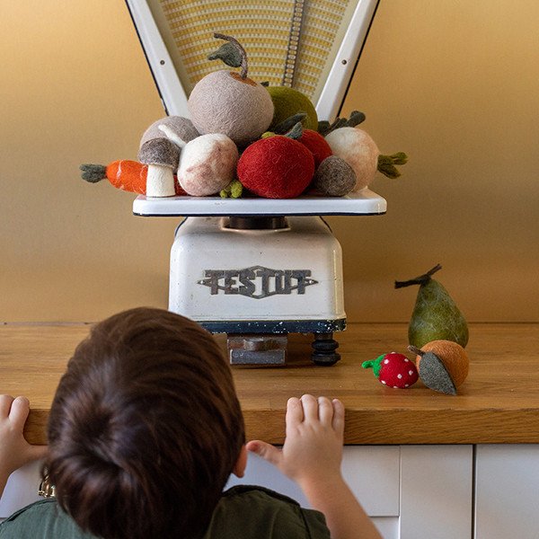 Le potager Muskhane est composé de nombreux fruits et légumes pour faire découvrir aux plus petits à travers des objets ludiques les belles choses qui les entourent ! Réalisés en feutre, ils sont aussi chouette pour jouer que pour décorer.