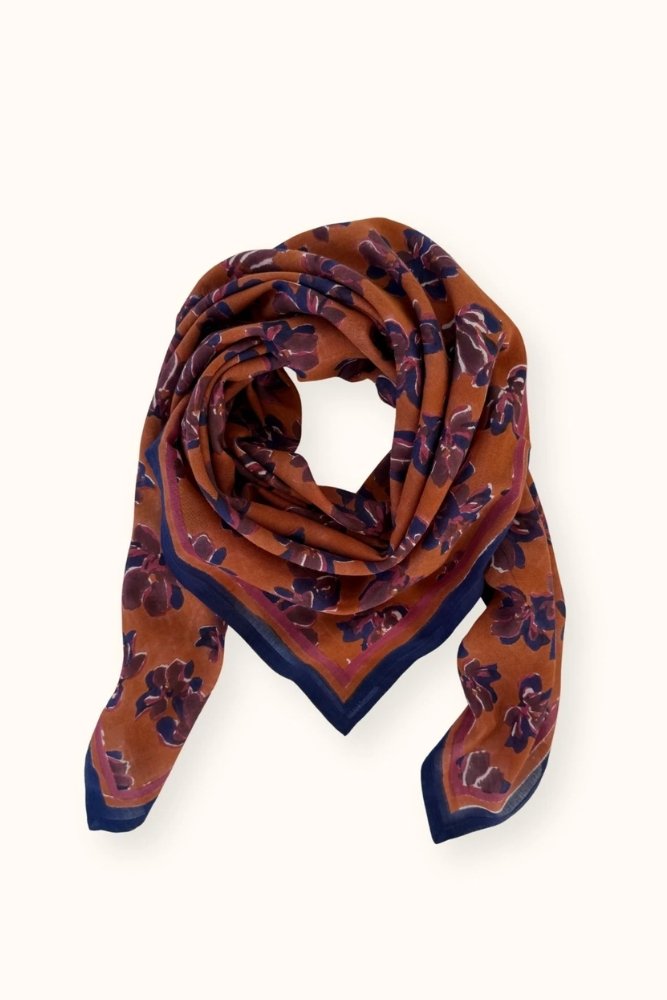 Ce joli foulard est confectionné de manière artisanale grâce à la technique indienne du block-print. Ses couleurs sont réalisées à partir de pigments naturels. Cette confection manuelle peut entraîner certaines “irrégularités” dont nous aimons le charme…
