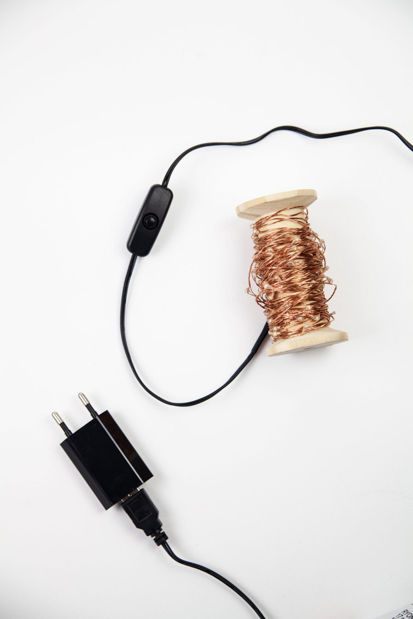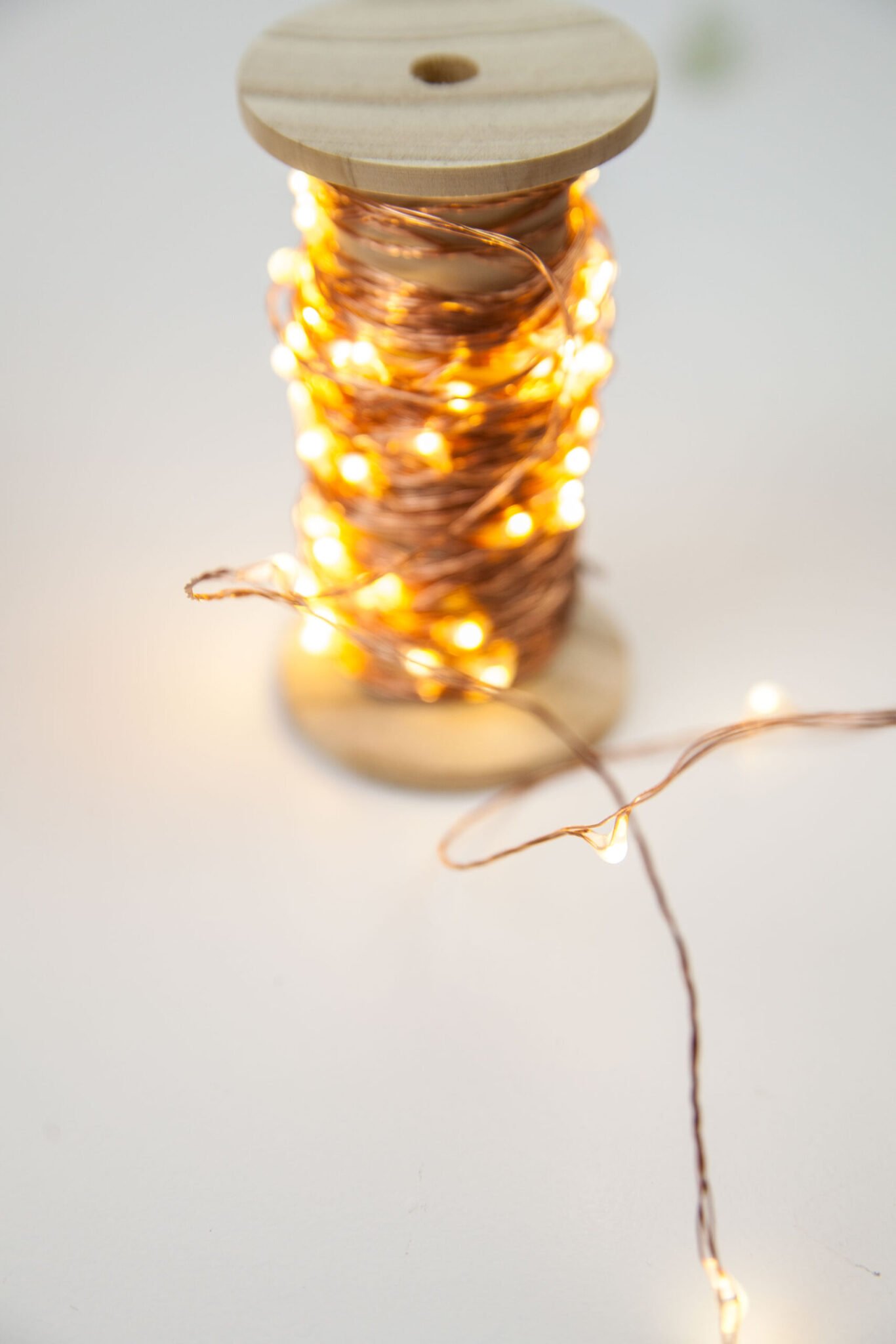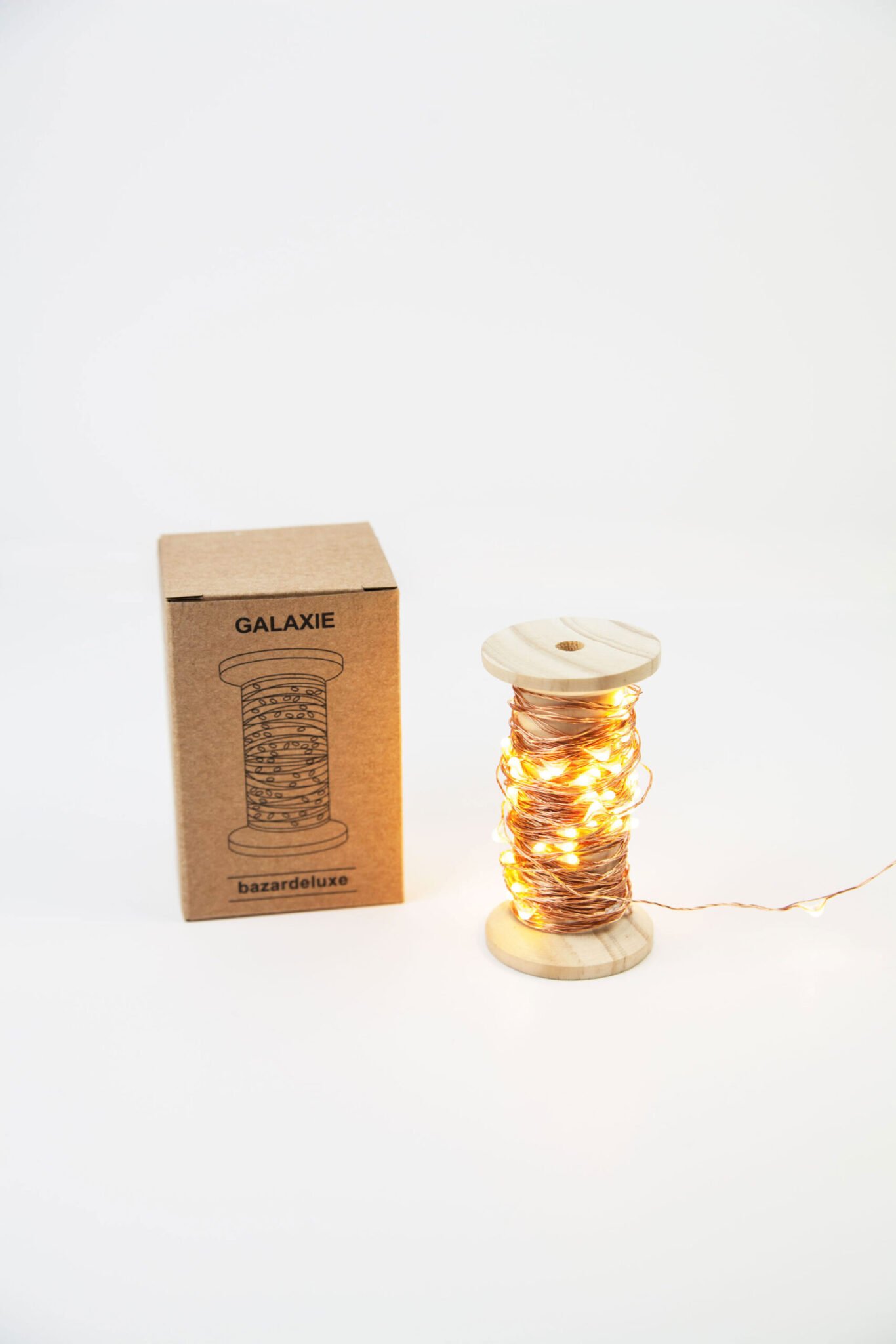 Guirlande de 10 mètres de LED sur une jolie bobine en bois, à installer où vous le souhaitez ; le long d’un mur, sous une cloche… Couleur dorée, cuivrée ou argentée au choix !