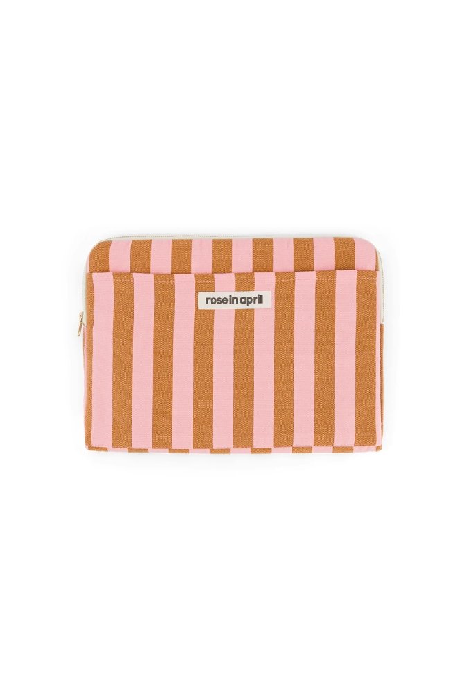 Housse d’ordinateur ‘Octave’ Rayures Caramel / Strawberry | ROSE IN APRIL