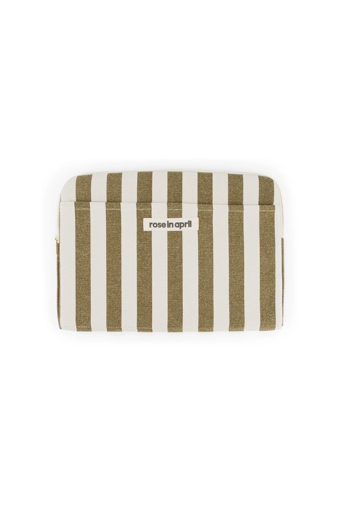 Housse d’ordinateur ‘Octave’ Rayures Olive / Greige | ROSE IN APRIL