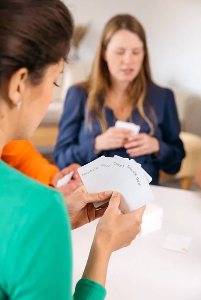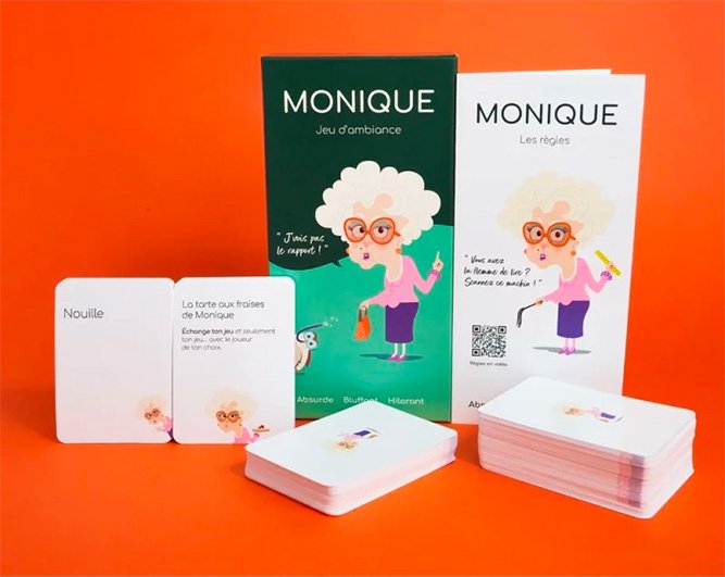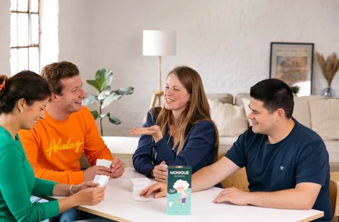 Le jeu d’ambiance ‘Monique’ consiste à associer des mots de manière humoristique et mêle stratégie et mauvaise foi.