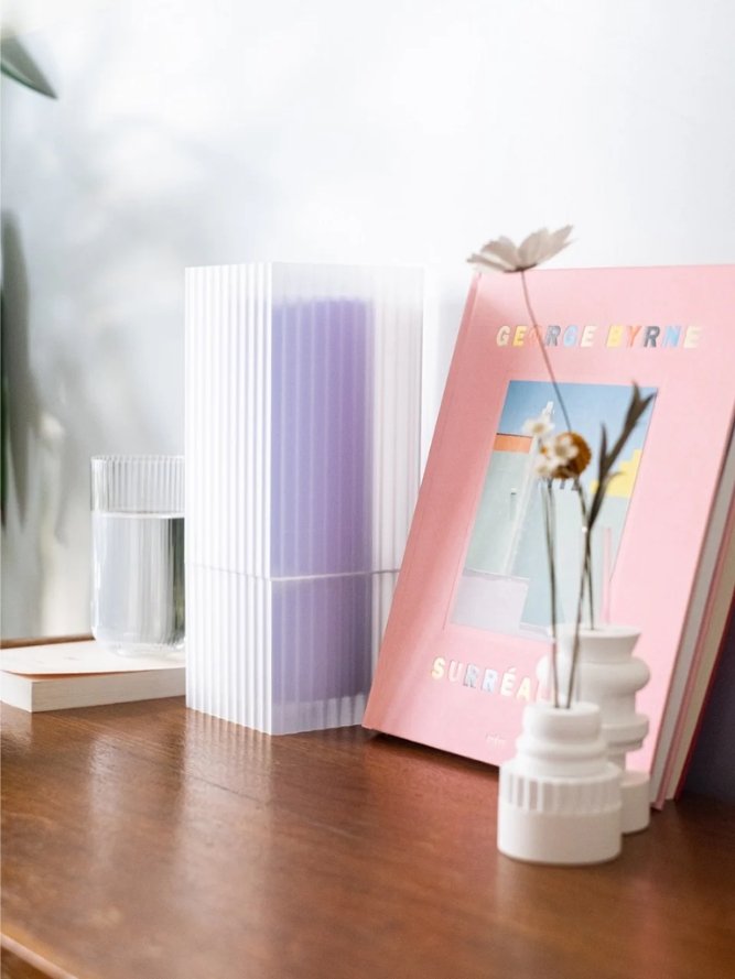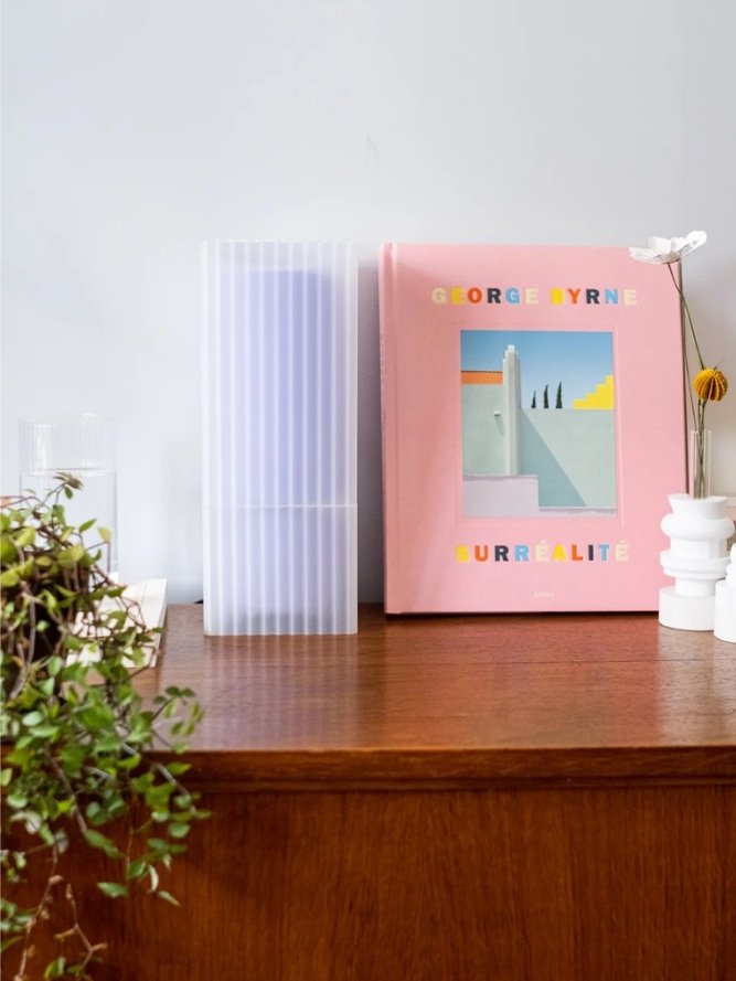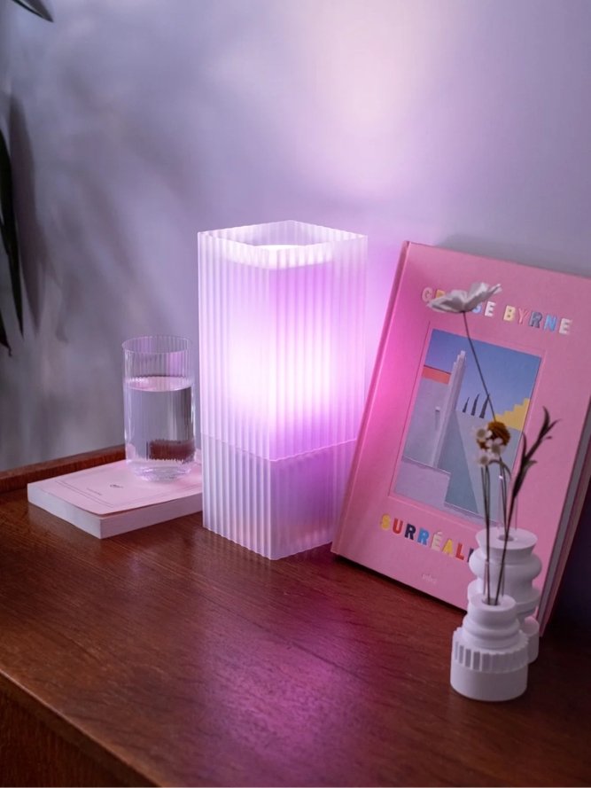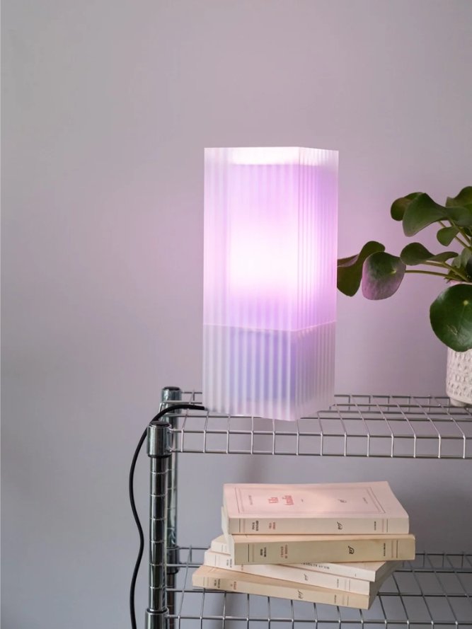 La jolie lampe ‘Igloo’ fait écho au design plastiques des années 70-80 dans un style minimaliste et cubique. Fabriquée à partir d’amidon de maïs, elle possède une paroie givrée et un coeur coloré. Cette lampe lavande lumineuse et suspendue, est ouverte sur le dessus pour faire apparaître la couleur de votre ampoule et ainsi créer un contraste.