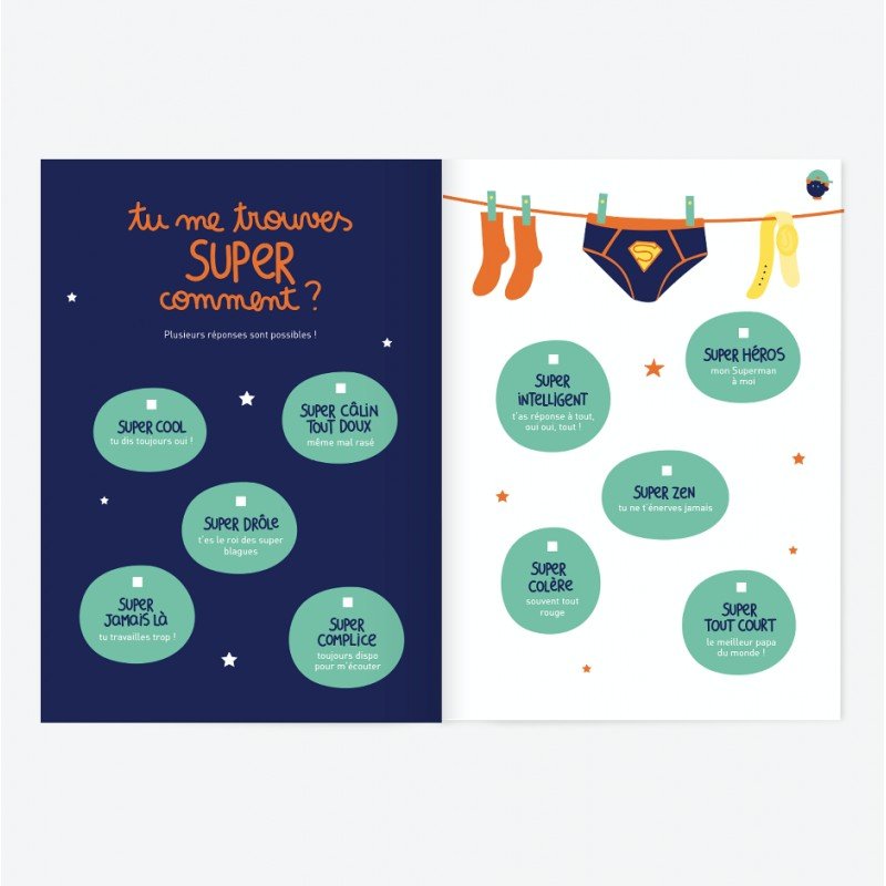 Avec un brin d’humour, un peu de sensibilité et beaucoup de légèreté, ce livre pour propose d’explorer ce qui vous lie, vous ressemble ou vous oppose. Au programme : des jeux et des activités pensées pour de vrais moments de complicité entre garçons !