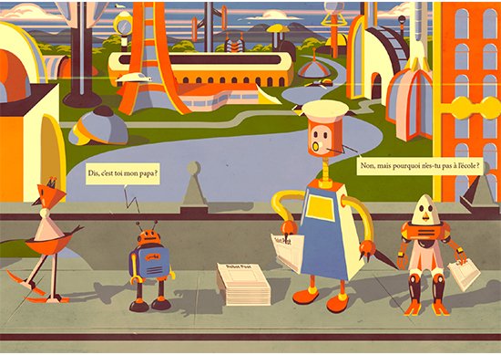 Perdu dans une grande grande ville, un tout petit petit robot part à la recherche de son papa. Sur son chemin, il fait alors la rencontre de toutes sortes de robots.
