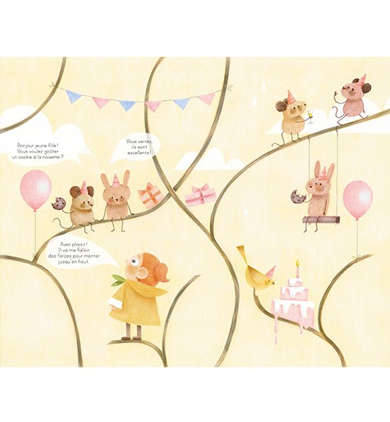 Comme tous les jours, perchée sur sa cabane, une petite fille observe la forêt. Tiens, un nouvel arbre étrange dépasse tous les autres. Mais est-ce vraiment un arbre ? Intriguée, elle décide d’aller voir de plus près…