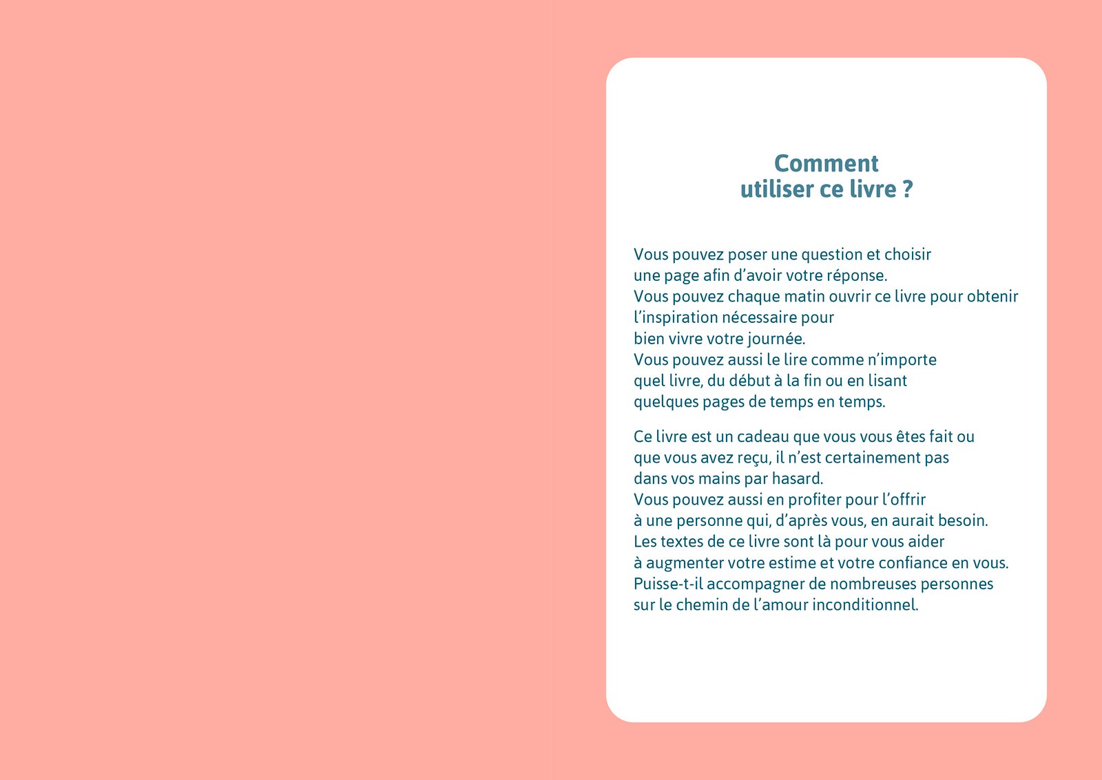 Ce livre oracle est là pour vous accompagner au quotidien. À chaque étape, à chaque obstacle, ses messages sauront vous guider vers la confiance et l’amour inconditionnel que nous méritons tou·te·s.