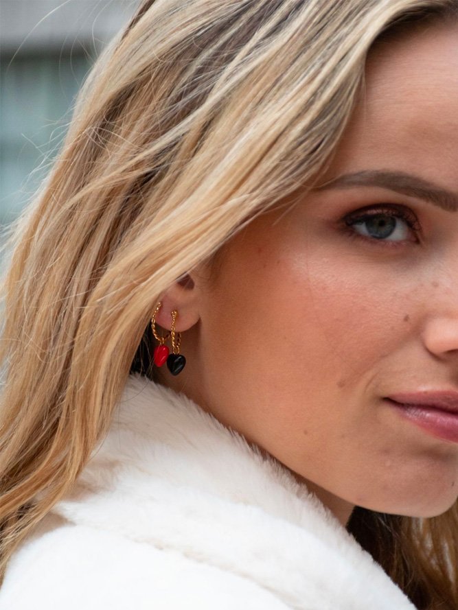 Cette mini créole NACH est composée d’un petit coeur noir en porcelaine, et d’une créole en laiton doré à l’or fin 24 carats. La porcelaine est réalisée et peinte à la main ce qui rend les pièces NACH uniques !