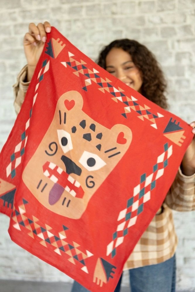 Ce joli foulard est confectionné de manière artisanale grâce à la technique indienne du block-print. Ses couleurs sont réalisées à partir de pigments naturels. Cette confection manuelle peut entraîner certaines “irrégularités” dont nous aimons le charme…