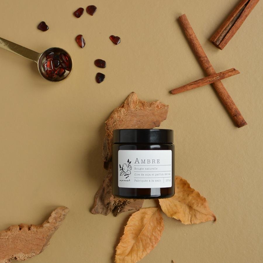 Ambre : Tout en rondeur, ce parfum libère des notes chaudes d’ambre et de vanille, auxquelles s’ajoutent un doux parfum de patchouli et une subtile touche de cannelle. Une légère pointe d’agrumes en note de tête vient rehausser le tout. Un parfum doux et délicat pour se cocooner et s’évader !