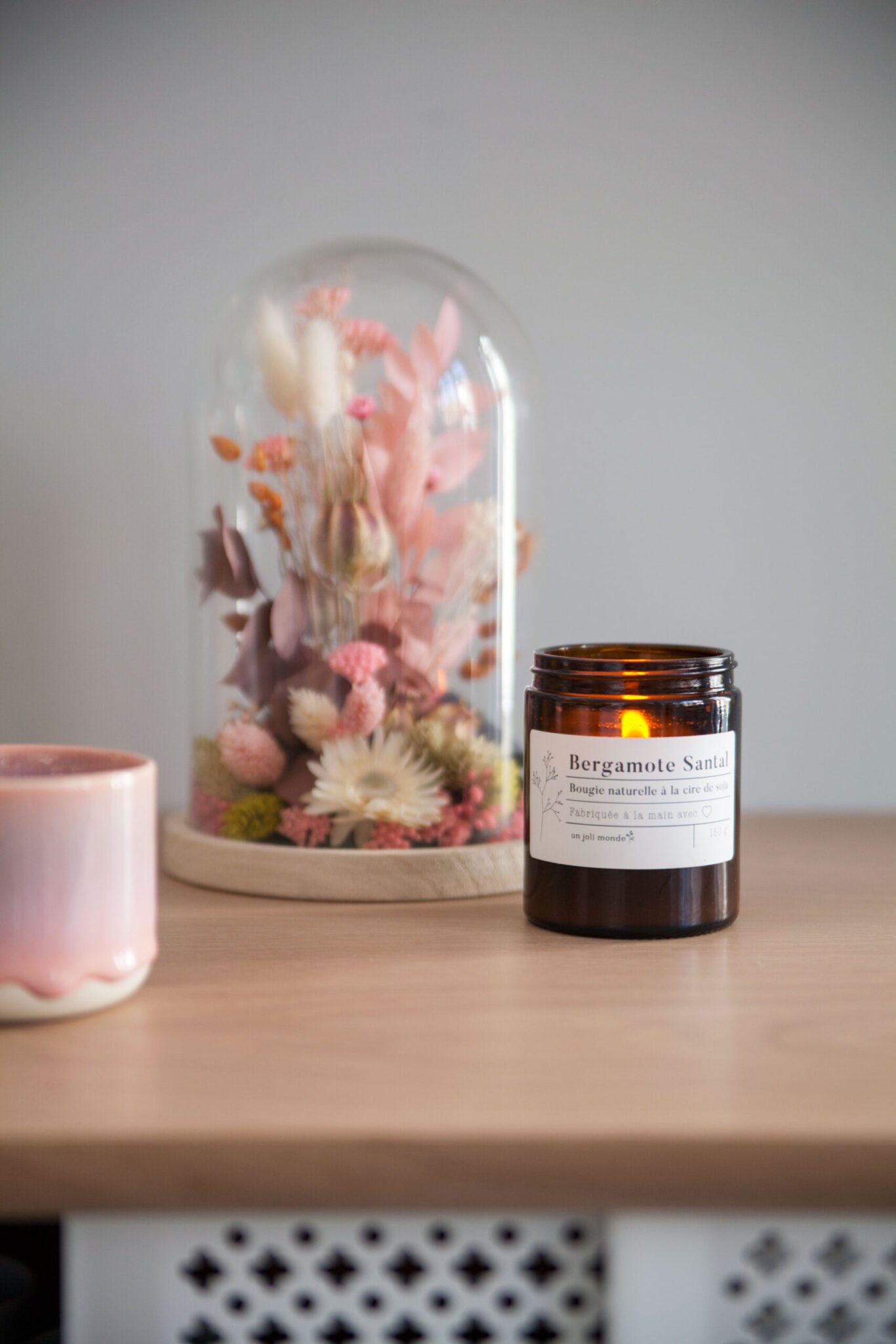 Chaque bougie est réalisée à la main, de façon artisanale dans l’atelier d’UN JOLI MONDE, à Nantes.