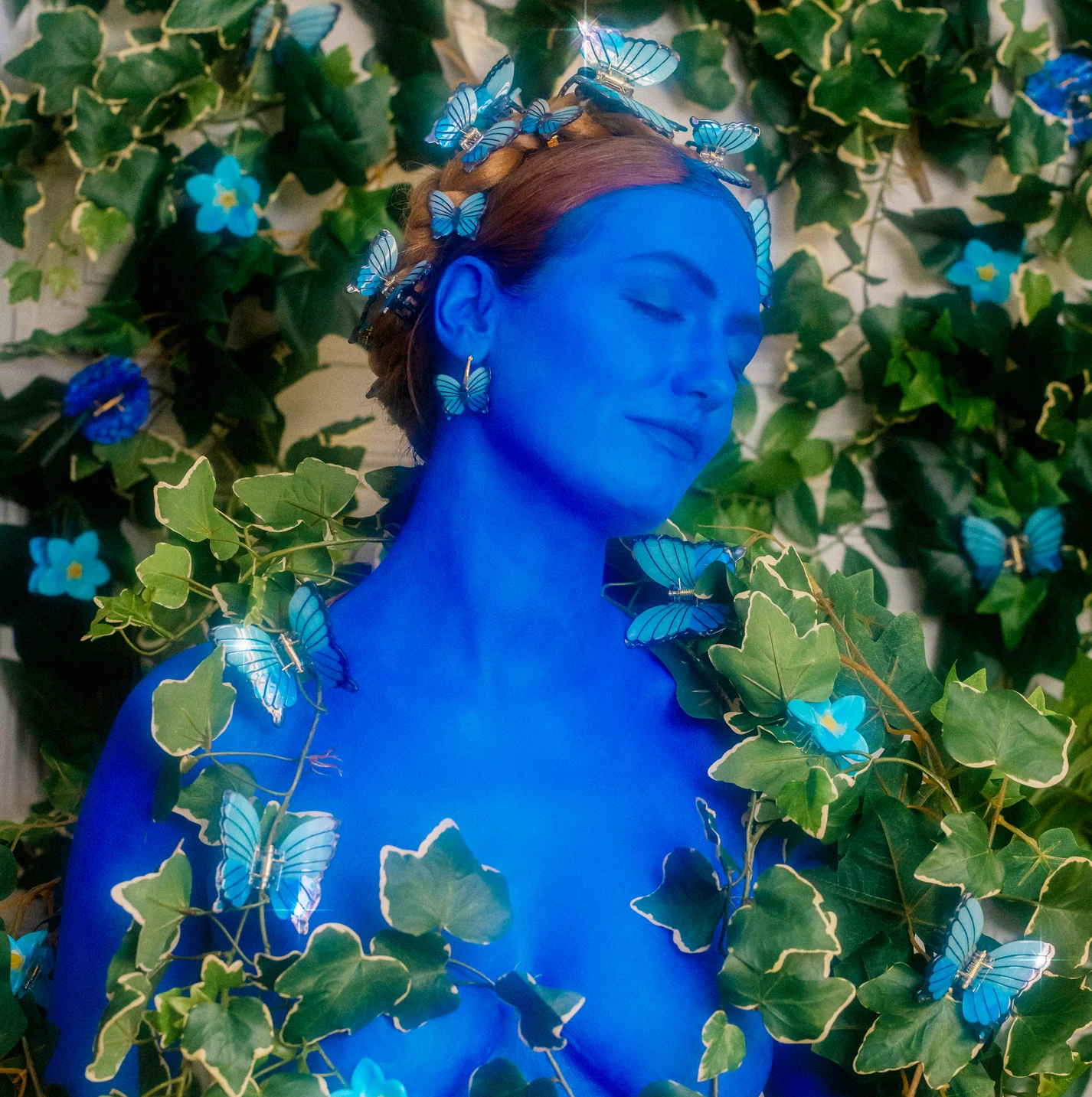 Un magnifique papillon bleu, prêt à butiner chaque fleur du jardin (y compris nous, bien sûr, fleur parmi les fleurs).