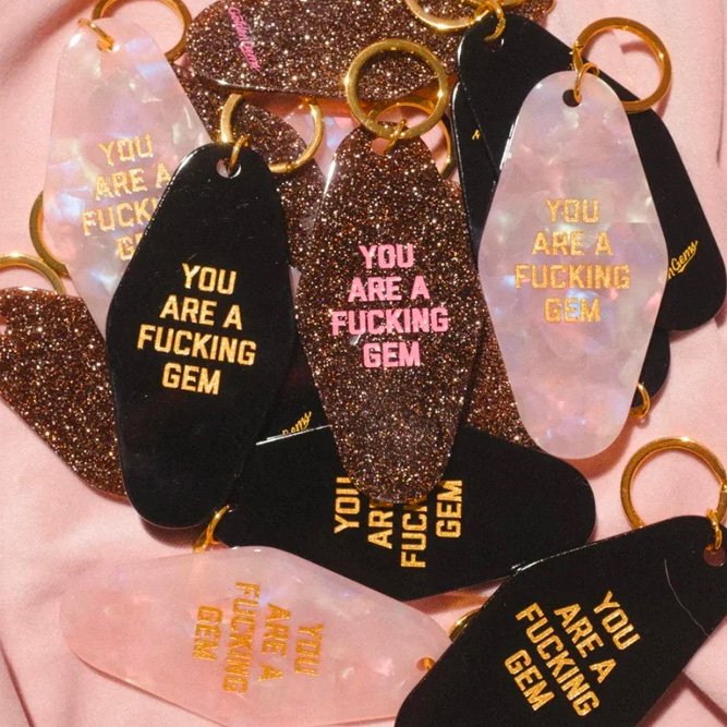 Ce joli porte-clé Golden Gems ‘You Are a Fucking Gem’ Rose est parfait pour donner une touche de peps à vos clés ! Trouvez vos clefs dans votre sac à main deviendra un jeu d’enfant !