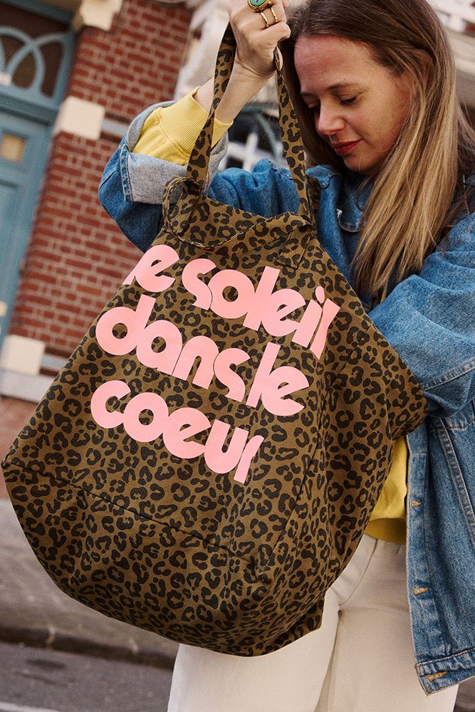 Ce cabas sérigraphié “Le soleil dans le cœur” vous accompagnera partout ! Très grand, il permet de ranger toutes vos affaires très facilement :