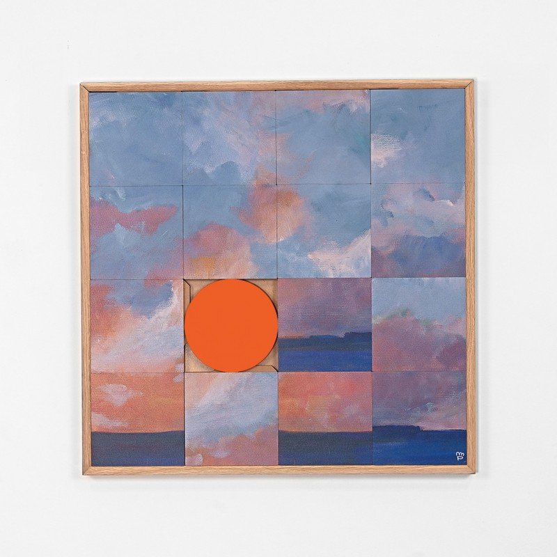 Le principe de Taquin repose sur un ensemble de palets carrés en MDF, imprimés d’illustrations originales et glissés dans un cadre en chêne massif. Chaque élément coulisse pour créer une composition sur mesure, qui peut évoluer au fil du temps. Un palet rond, signature visuelle de la marque, permet de verrouiller la disposition choisie. Il suffit de le faire pivoter pour réinventer son tableau.