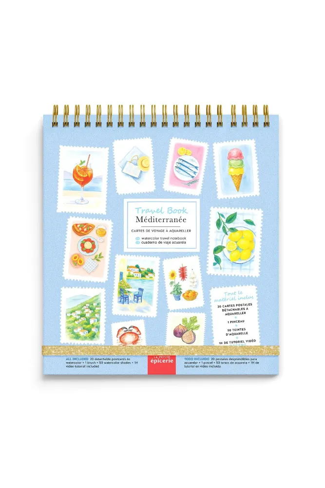 Avec le Travel Book Méditerranée, plongez dans des paysages ensoleillés à aquareller ou à colorier : criques aux eaux turquoises, villages colorés, scènes de bord de mer… Une douce invitation à prolonger l’été et à voyager au fil de vos pinceaux.