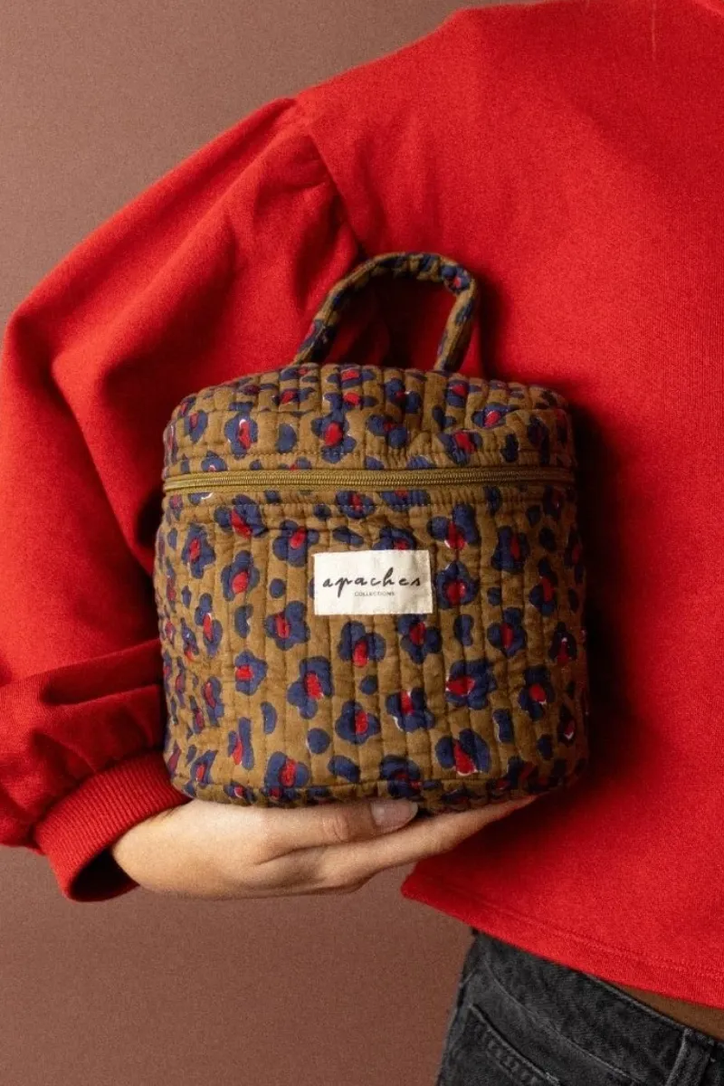 Succombez au vanity Tara d’Apaches Collections, orné d’un bel imprimé à l’indienne en blockprint. Matelassé et pratique, il dispose d’une fermeture zippée sécurisée et d’une poignée pour transporter facilement tous vos essentiels avec style.